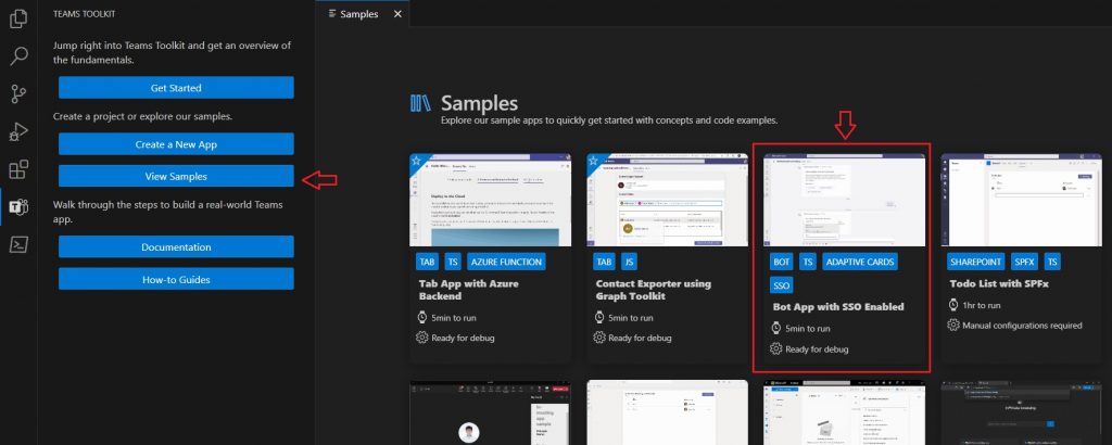 Select “View Samples” and then select “Bot App with SSO Enabled“: