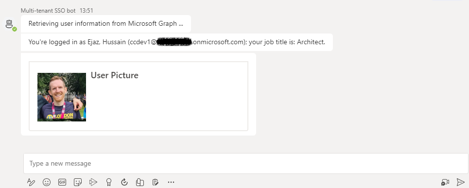 Following the granting of permissions, you’ll be able to view your details, including your name, email address, job title, and profile picture: