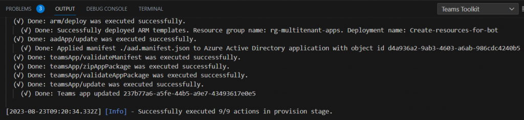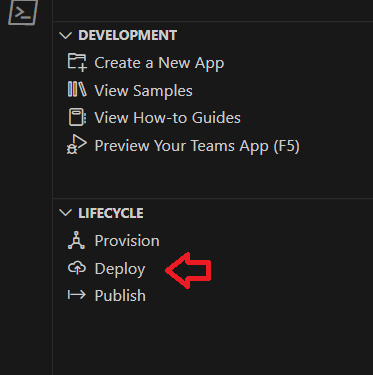 To create the resources in Azure, select Provision from the “lifecycle” section. The steps of the provision command are specified within the teamsapp.yml file.