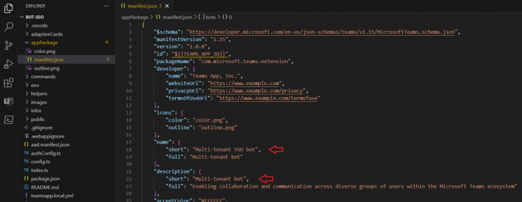 Numerous tools are available for developing Microsoft Teams apps, and they all utilize the Microsoft Teams SDK in the background. Within this piece, my aim is to utilize the Teams Toolkit for the creation of a multi-tenant Teams bot (you can refer to this document for installation instructions). Furthermore, I will use one of the samples equipped with Single Sign-On (SSO) capabilities to transform it into a multi-tenant application.