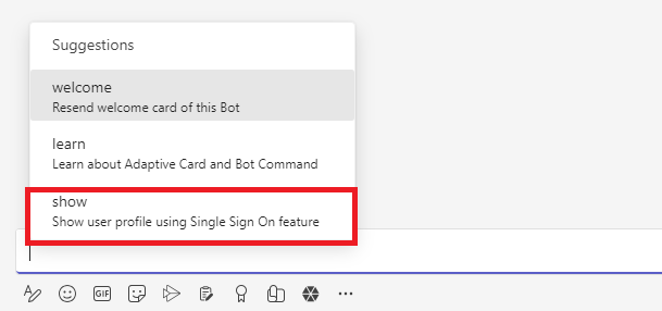 Once bot has installed, select show action from the list of suggestions:
